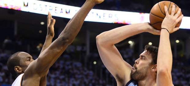 El pívot español Marc Gasol puso un tapón en los últimos segundos de la prórroga y el alero Kevin Durant falló un tiro de personal que permitió a los Grizzlies de Memphis ganar 100-99 a los Thunder de Oklahoma City en el quinto partido de la eliminatoria de la primera ronda de la Conferencia Oeste.