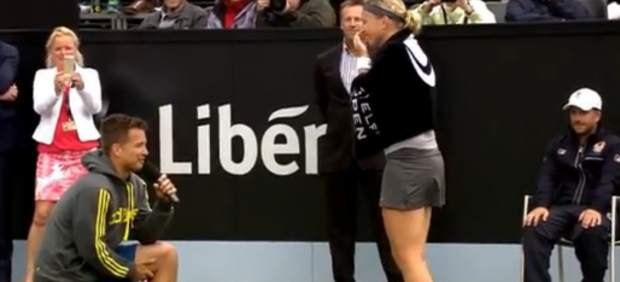 La tenista holandesa Michaella Krajicek superó este lunes la primera ronda del torneo de tenis sobre hierba de Hertogenbosch y, cuando estaba celebrándolo, su novio le pidió matrimonio en la misma pista. Krajicek (n.207 WTA) no olvidará el día de hoy.