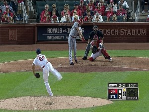 El boricua Yadier Molina y Randal Grichuk pegaron dobletes productores en fila por San Luis en la sexta, pero los Rojos respondieron con cuatro anotaciones en el octavo. Mesoraco dio el golpe definitivo con su cuadrangular de tres anotaciones ante Sam Tuivailala que colocó la pizarra 6-2.