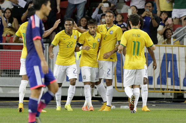 La selección brasileña de fútbol, con cuatro goles de Neymar, derrotó hoy por 4-0 a Japón, dirigido por Javier Aguirre, en un partido amistoso disputado en Singapur y prolongó su invicto, con un rendimiento del cien por cien desde que el técnico Dunga asumió el comando de la "canarinha" tras el fracaso en el último Mundial.