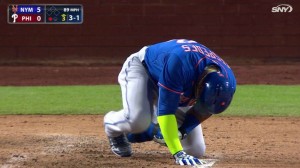 El jardinero de los Mets soltó de inmediato el bate, sacudió la mano y se desplomó en la caja de bateo. El manager de los Mets Terry Collins y un kinesiólogo acudieron desde la cueva y acompañaron a Céspedes de regreso a ésta. Adquirido el 31 de julio a Detroit, antes de que venciera el plazo para realizar canjes, Céspedes batea para .287 con 17 jonrones y 44 producidas en 54 juegos con los Mets.