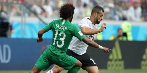 Arabia Saudí derrotó a Egipto 2-1 con un gol en la prórroga, anotado por el centrocampista del Villarreal Salem Al Dawsaryen. Con esa derrota Egipto terminó su participación en la Copa del Mundo tras perder todos los partidos en el grupo A.