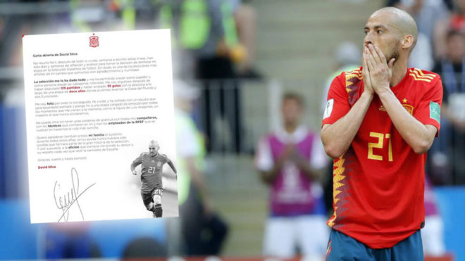El internacional también agradeció a su familia que haya sido su "sustento" durante todos estos años porque está convencido de que sin su ayuda nunca hubiera sido posible que formase parte de la "gran historia" del combinado nacional.Además, tuvo un recuerdo para la afición, que "siempre" le brindó su apoyo y su respeto cuando vestía la camiseta de España. Silva reconoce que su decisión "no resulta fácil" después de "todo lo vivido" con 'La Roja'.