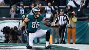 PHILADELPHIA — Zach Ertz, impuso una nueva marca de la NFL con el mayor número de recepciones en una campaña para un ala cerrada. El ala cerrada de los Philadelphia Eagles llegó al duelo ante los Houston Trxans con 101 recepciones, nueve atrás de la marca en poder de su ídolo, Jason Witten y el quarterback Nick Foles lo buscó con frecuencia.