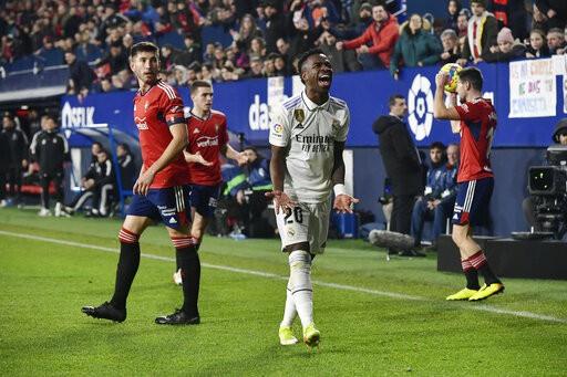 Los insultos contra el delantero del Real Madrid Vinicius Junior no paran en España luego que el jugador brasileño fuera víctimas de más de improperios en el partido contra Osasuna en la Liga. Vinicius recibió insultos desde el mismo momento de silencio que se guardó en la victoria del Madrid por 2-0 en Osasuna el sábado, y continuaron con los aficionados coreando "Vinicius muérete". “Los insultos siguen… pero el baile también”, escribió Vinicius en Twitter tras la victoria.